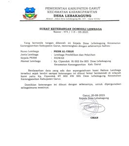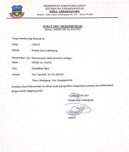 • Izin dari Dinas Pendidikan Kabupaten Garut yang menjadi persetujuan utama dari otoritas pendidikan setempat.